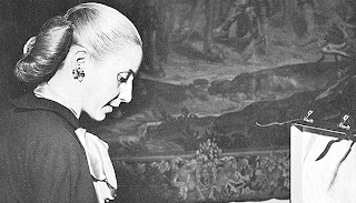 Argentina.- Las imágenes de Evita forman parte de las postales argentinas junto con las de Gardel y las del Che: Evita en pleno discurso frente a micrófonos de los años cuarenta, Evita con su cabello trenzado y sujeto en un rodete y su collar de perlas, Evita sonriente con un niño en brazos. Resulta enigmático que algunas fotos de evidente valor histórico y tomadas por una de las fotógrafas más reconocidas del siglo XX, hayan sido sistemáticamente obviadas, incluso en el último libro de imágenes, Evita en fotos, de Felipe Pigna, editado el año pasado por Planeta.